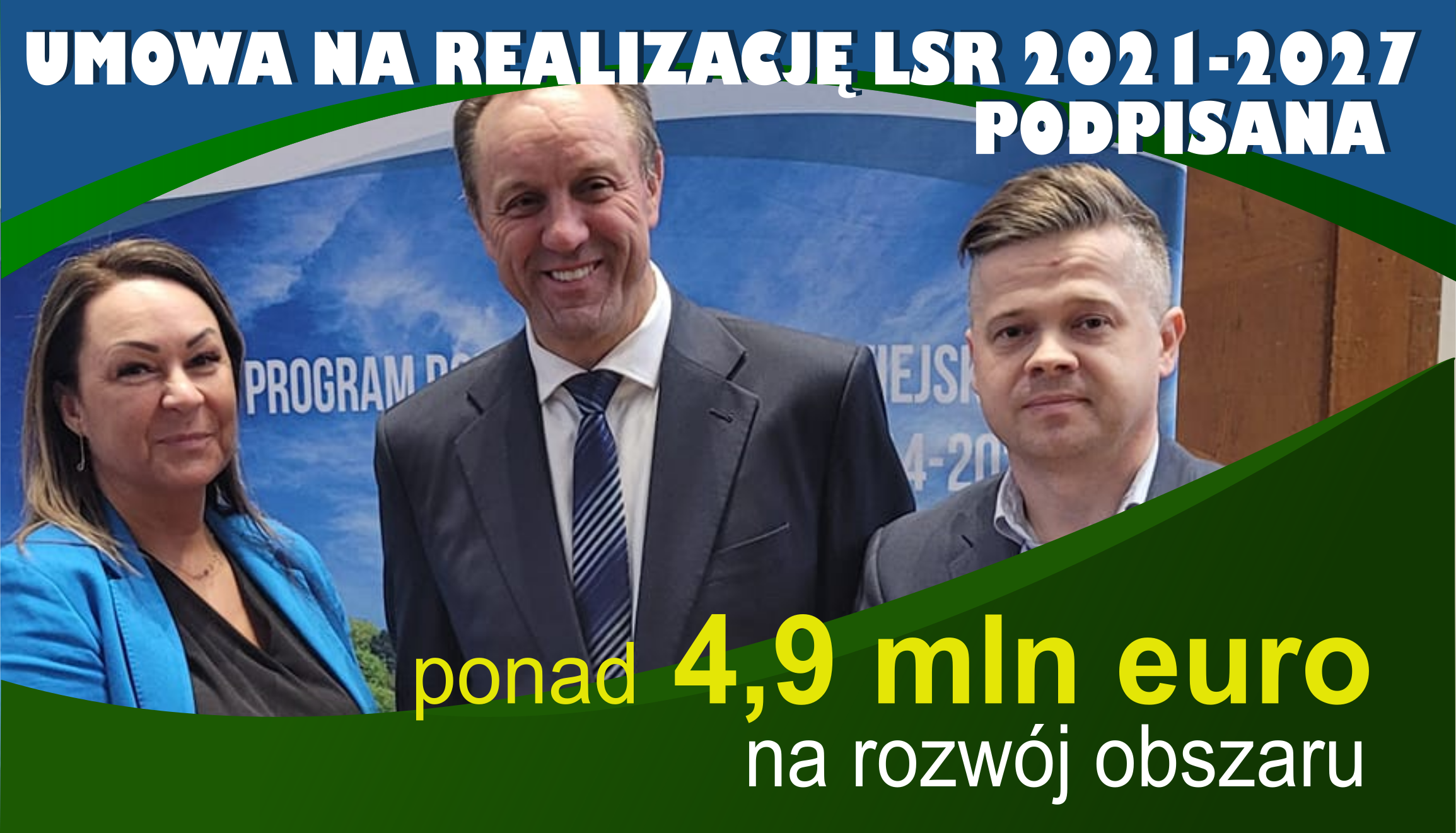 24.01.2024 r. w Gdańsku Stowarzyszenie „Bursztynowy Pasaż”, reprezentowane przez Prezesa Michała Słowika oraz Wiceprezes Aleksandrę Dobrzańską, podpisało umowę z Zarządem Województwa Pomorskiego, reprezentowanym przez Marszałka i Wicemarszałka Województwa Pomorskiego, panów: Mieczysława Struka i Wiesława Byczkowskiego, na realizację Lokalnej Strategii Rozwoju na lata 2021-2027. Budżet przeznaczony w strategii na realizację projektów przyczyniających się do rozwoju gmin: Choczewo, Gniewino, Wejherowo, Cewice, Nowa Wieś Lęborska, Wicko i miasta Łeba, to ponad 4,9 mln euro pochodzących z trzech różnych funduszy unijnych (EFS+, EFRR, EFRROW).