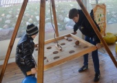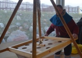 Dzieci chętnie próbowały swoich sił w chodzeniu na szczudłach, pierwsze swoje kroki stawiali pod czujnym okiem wprawionych już szczudlarzy ze Stowarzyszenia na rzecz Rozwoju Gminy Wicko Inicjatywa.