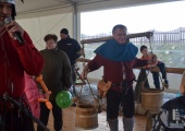 Dla tych, którym niestraszna była aura czekały przejażdżki wózkami akumulatorowymi, zakupionymi w ramach „Tworzenia i rozwoju mikroprzedsiębiorstw”, które zakupił Pan Tomasz Wrzosek. Po przejażdżce można się było rozgrzać podczas marszu nordic walking, w towarzystwie instruktorek z firmy North Event lub przy gorącym barszczu, gołąbkach, pierogach, które serowały Koła Gospodyń Wiejskich z Gminy Gniewino oraz ze Starbienina.