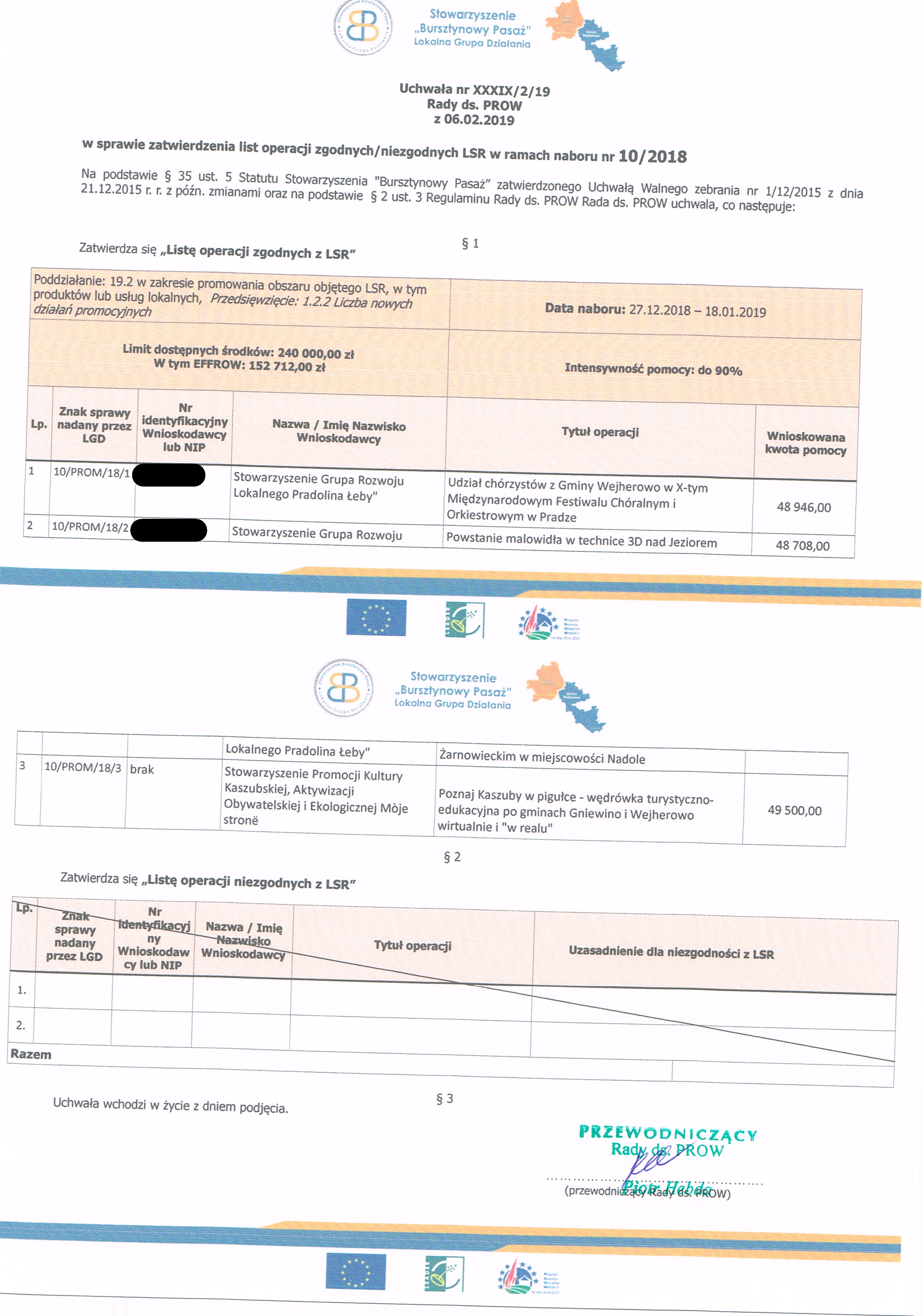 - Lista operacji zgodnych / niezgodnych z Lokalna Strategią Rozwoju w ramach naboru nr 10/2018 - plik w formacie png